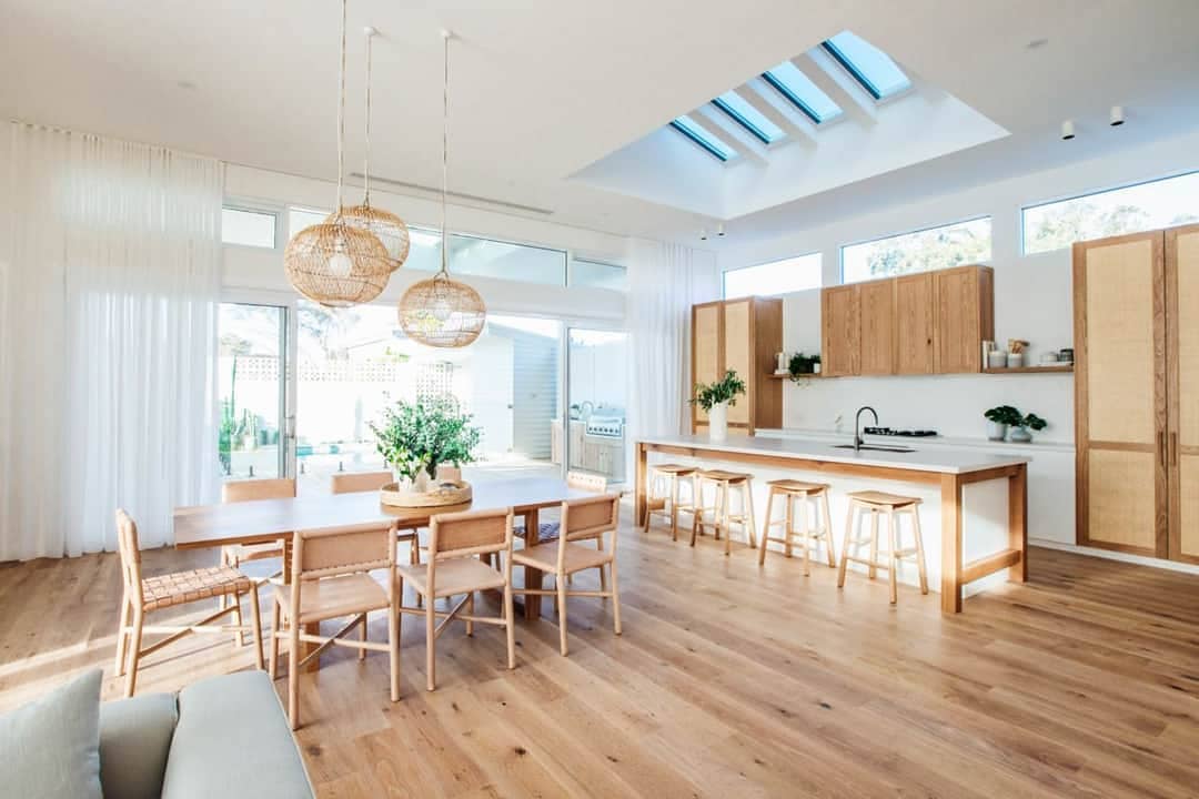 Ai cũng biết các bức tường sẽ giúp phân khu các không gian trong nhà hiệu quả nhất. Nhưng với căn hộ nhỏ, việc có quá nhiều tường ngăn chỉ khiến nhà chật chội hơn mà thôi, thế nên giải pháp tốt nhất cho căn hộ nhỏ là hãy hạn chế tường ngăn. Ví dụ như thay vì xây tường ngăn giữa phòng ăn và phòng khách bạn có thể phân chia không gian của chúng bằng cách kê nội thất xoay lưng, dùng màu thảm khác nhau hoặc giật cấp sàn. Rất hiệu quả mà nhà còn rộng hơn nhiều đấy nhé!
