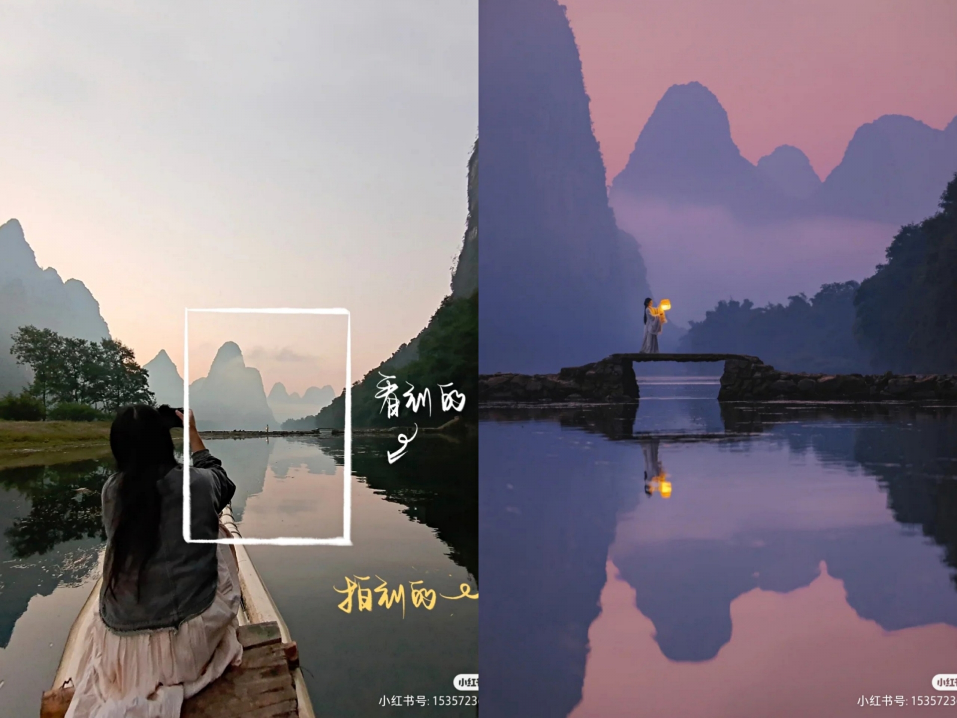 Tới Quế Lâm - một trong những địa điểm chụp bộ ảnh, không phải lúc nào thời tiết cũng sáng trong thích hợp. Họ đã phải chờ nhiều ngày mưa bụi mịt mù, lại tiếp tục khảo sát vị trí, thuê thuyền vv… mới có thể chụp được bộ ảnh hoàn chỉnh.