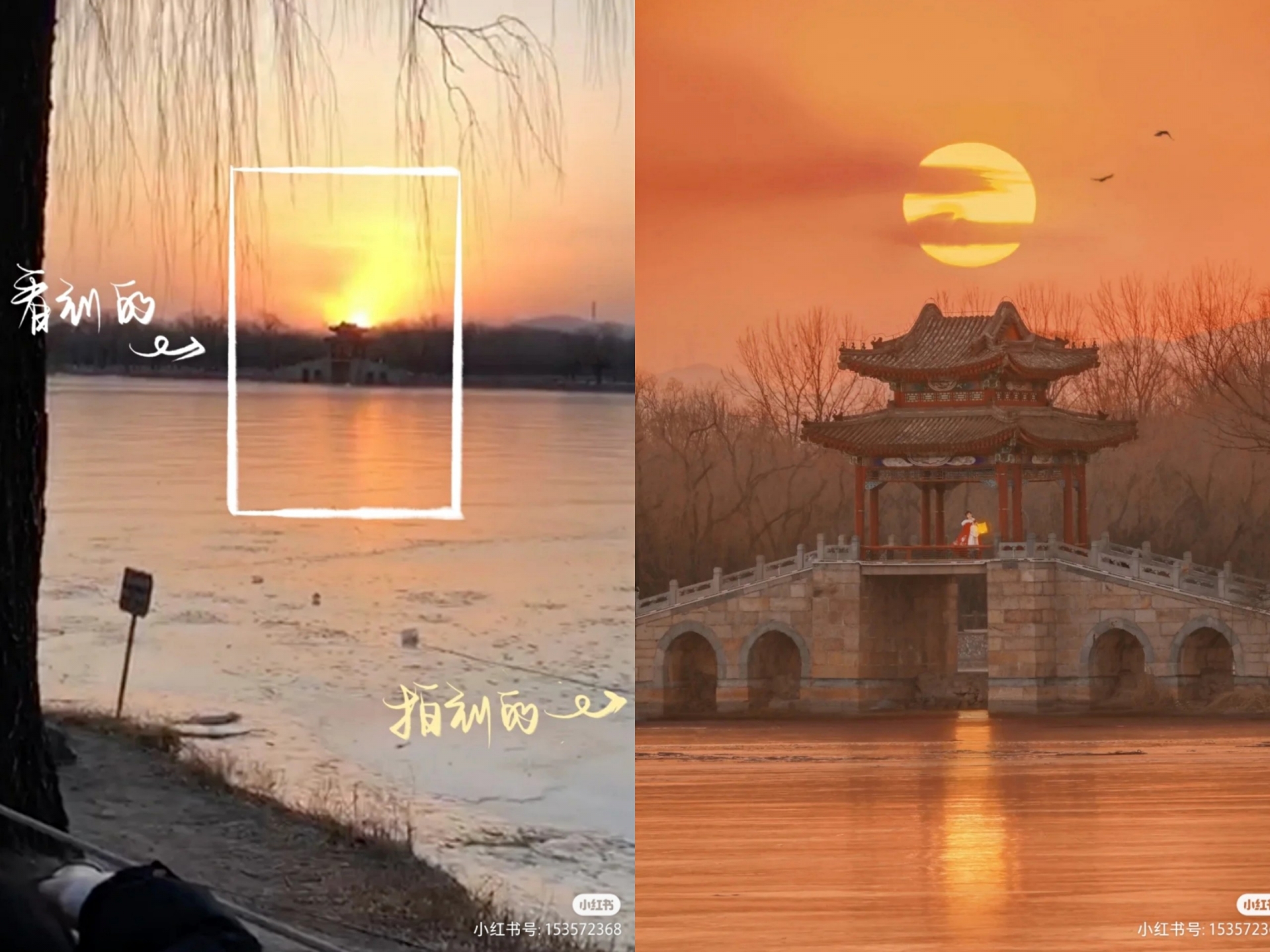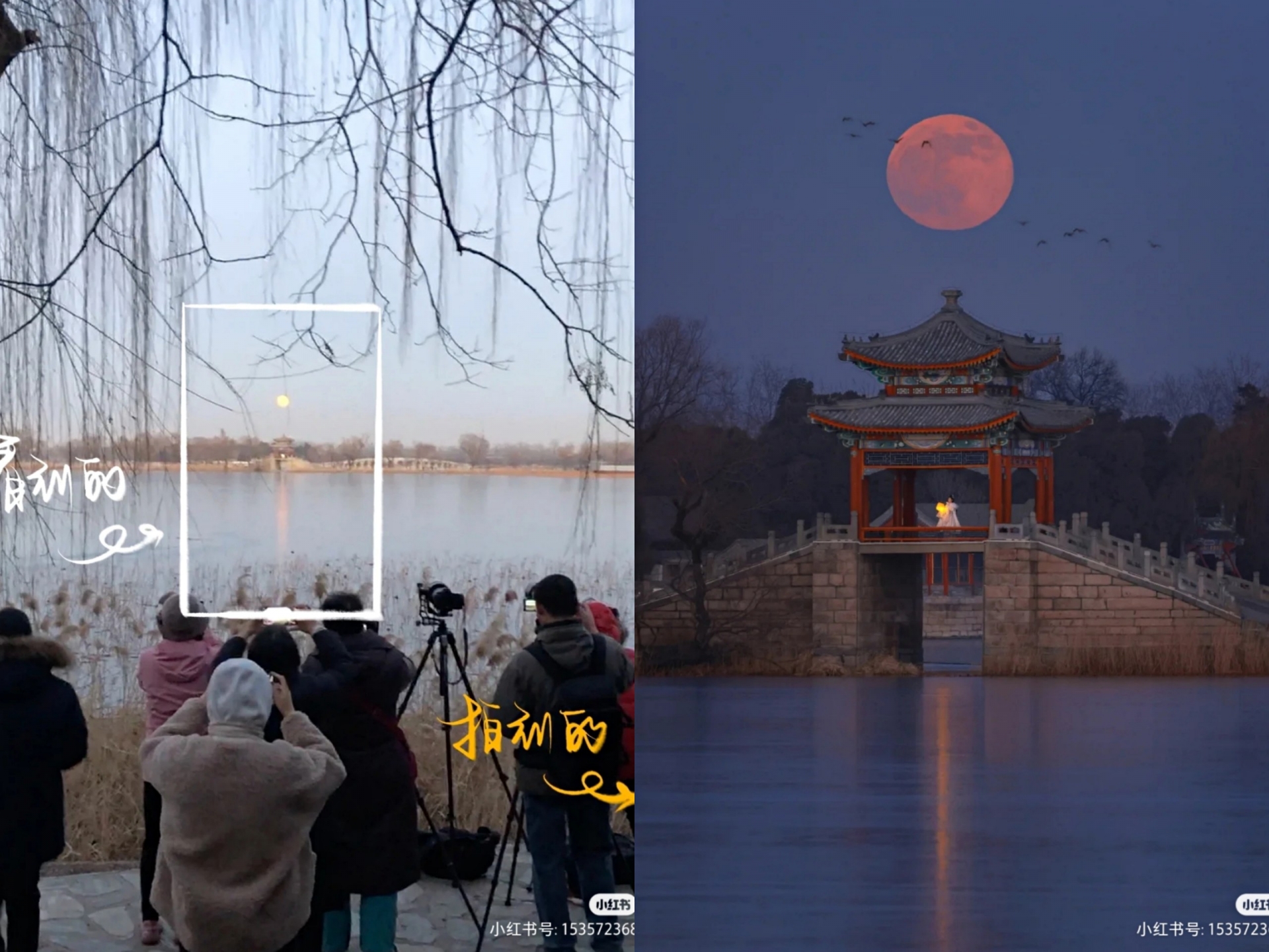 Nnhư trong hai bức ảnh chụp tại đình đài trong Di Hòa Viên (Bắc Kinh), Lưu Thuận đứng cách người mẫu nửa hồ Côn Minh, với khoảng cách khoảng 1km. Cô còn cho hay, trước đó cô phải dùng phần mềm tính toán thời gian trăng đi qua đỉnh của đình đài chính xác là ngày nào, đi tiền trạm khảo sát vị trí chụp rồi mới thực hiện được.