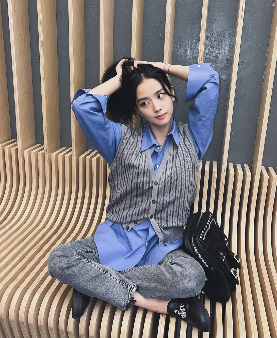 Ngoài ra, Jisoo cũng ưu tiên cho những item rộng rãi như áo sơ mi, áo blouse tay bồng để giảm bớt sự chú ý vào eo và bắp tay.