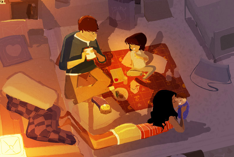 Là cảm giác nhẹ nhõm kỳ lạ mỗi khi bước chân vào nhà. Rõ ràng khi ở chỗ làm, rồi trên đường về, cái lưng đau buốt, cái vai nhức nhối. Vậy mà về tới nơi, mở tủ lạnh nhón miếng táo bố bổ sẵn mát ngọt, lại cảm thấy thư thái, thả lỏng thoải mái vô cùng.