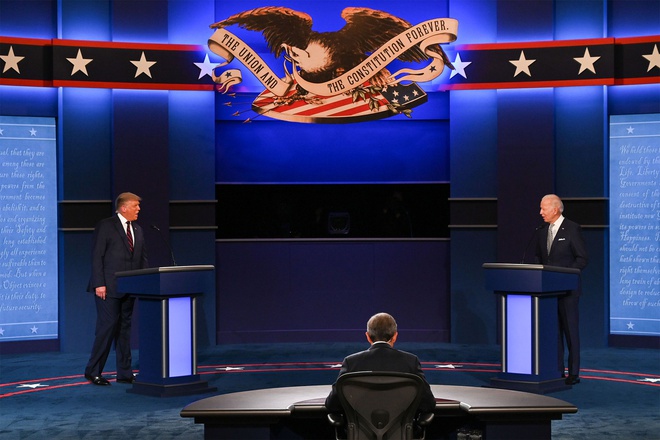 Vì ảnh hưởng bởi dịch Covid-19, tuân thủ giãn cách xã hội bởi vậy ông Joe Biden và Donald Trump chỉ chào nhau từ xa, khán giả chương trình cũng bị giới hạn.