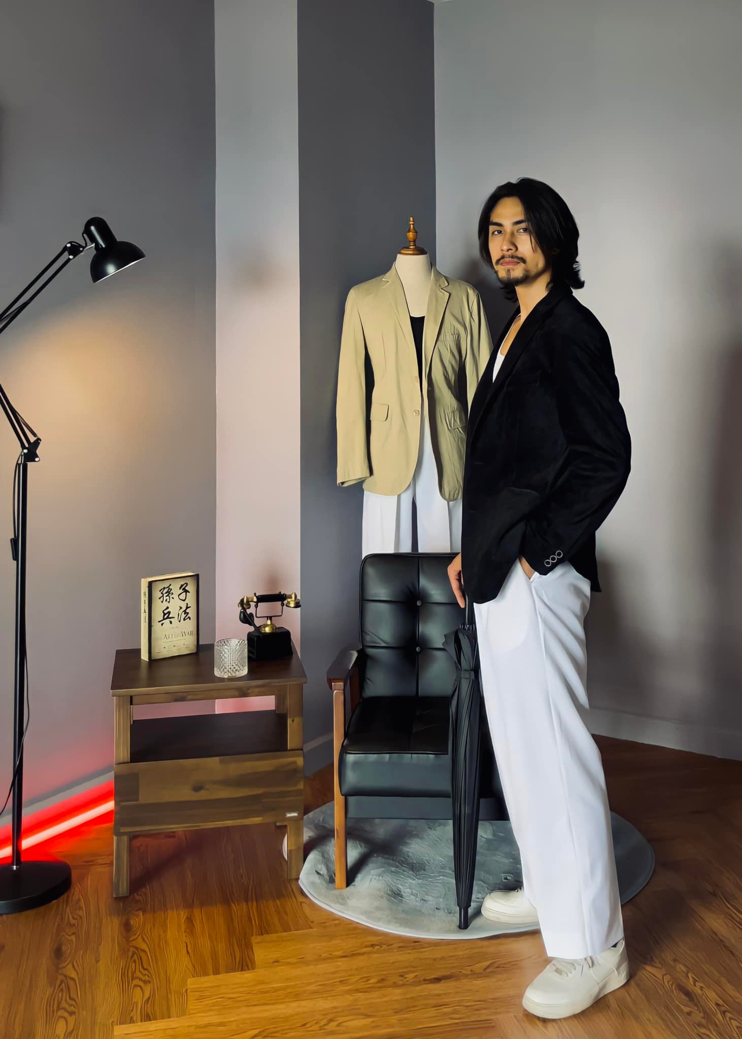 Anh chàng giúp cụ thể hóa hình ảnh một chàng trai tóc dài bay bổng. Để không bị "cứng", anh chàng khoác blazer nhưng thường xuyên mặc áo thun cổ tròn bên trong.