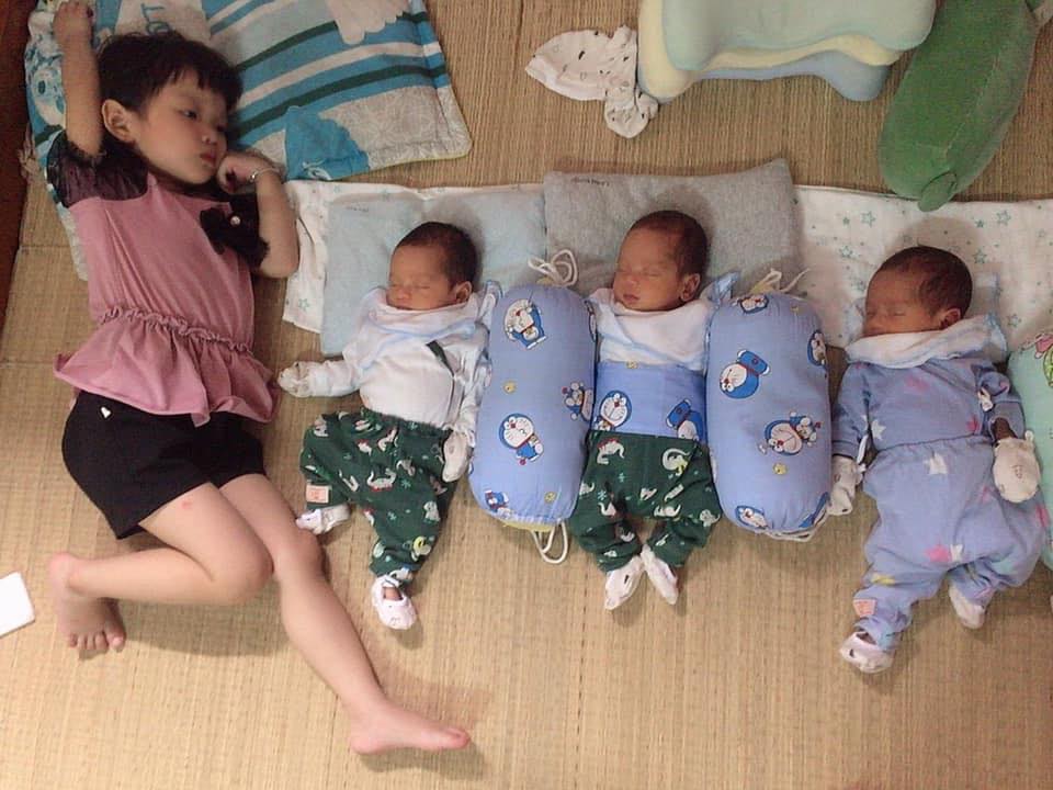 Gần 3 tháng sau ngày hạ sinh thành công 3 chàng trai nhỏ, chị Thương cho hay bản thân chị vừa hạnh phúc lại vừa áp lực khi phải đối mặt với gánh nặng cơm áo và nỗi vất vả chăm con ngày đêm.