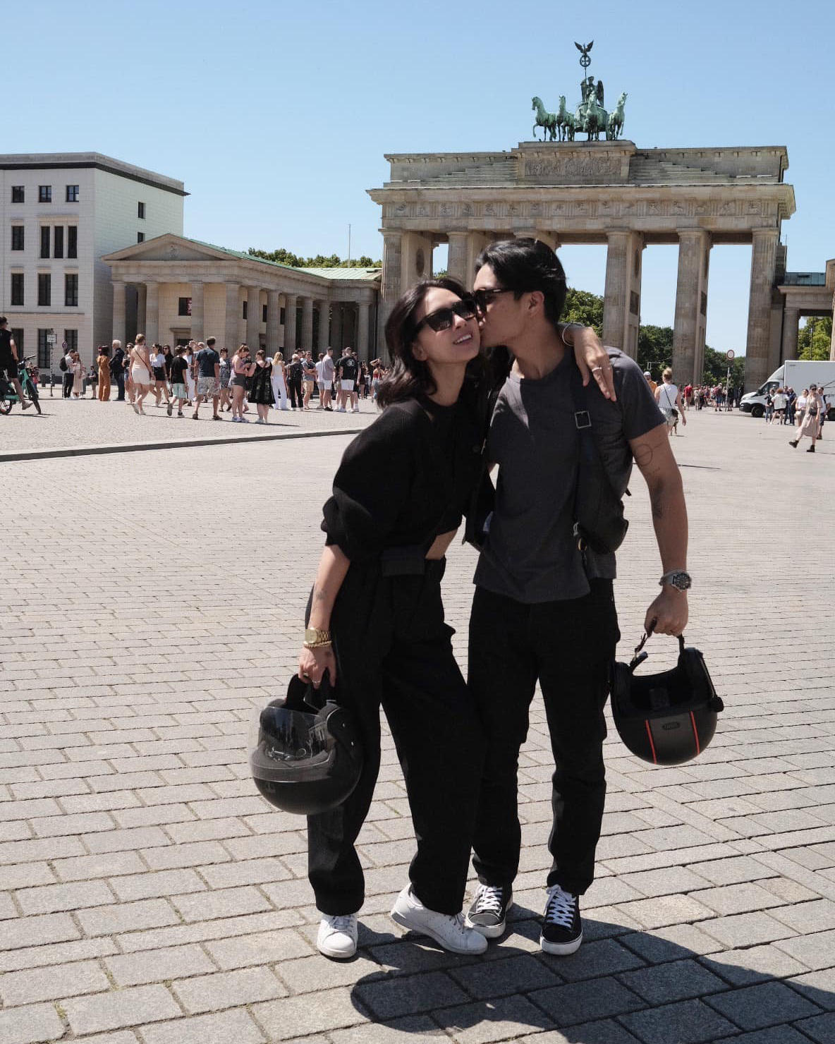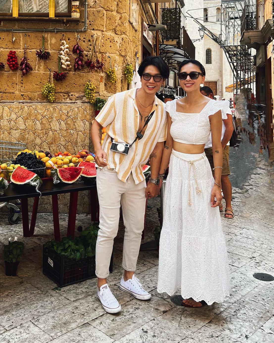 Sau khi kết hôn, cặp đôi dành nhiều thời gian ở trời Tây để du lịch và nghỉ dưỡng. Ở mỗi địa điểm, Ngô Thanh Vân và Huy Trần lại ghi lại những khoảnh khắc "tình bể bình" bên nhau. Trang phục mà họ lựa chọn hướng đến sự trẻ trung và thoải mái. Ngô Thanh Vân thường mặc váy chất liệu linen mỏng trong khi Huy Trần giản dị với trang phục tối màu.